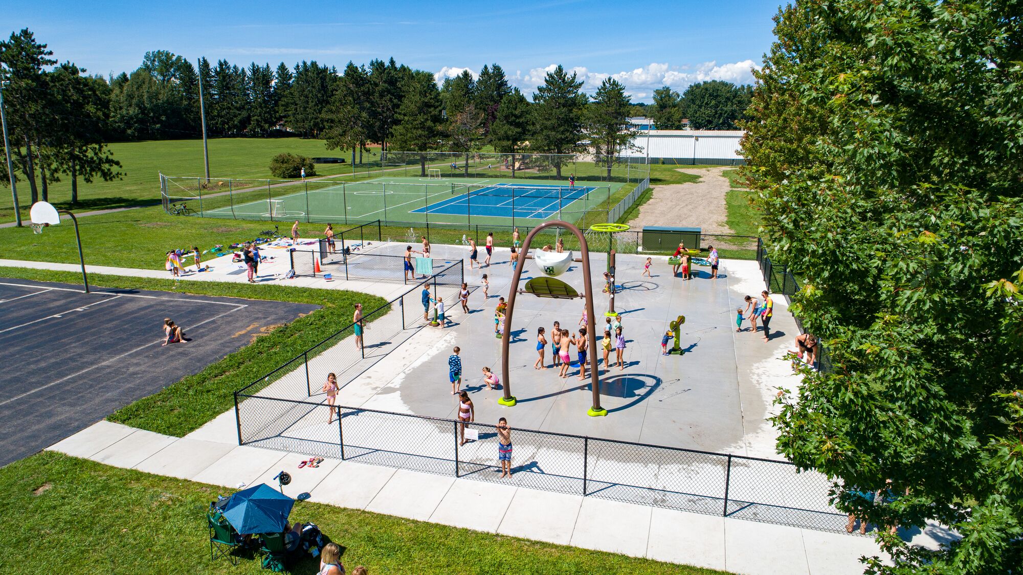 With thoughtfully placed spray features and inclusive design elements, the space encourages social interaction, cooling relief, and active play—making it a go-to destination for summer recreation. The splash pad is seamlessly integrated into the park’s landscape, offering nearby seating and open sightlines for parents and caregivers.